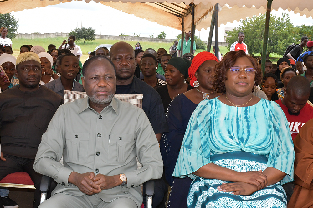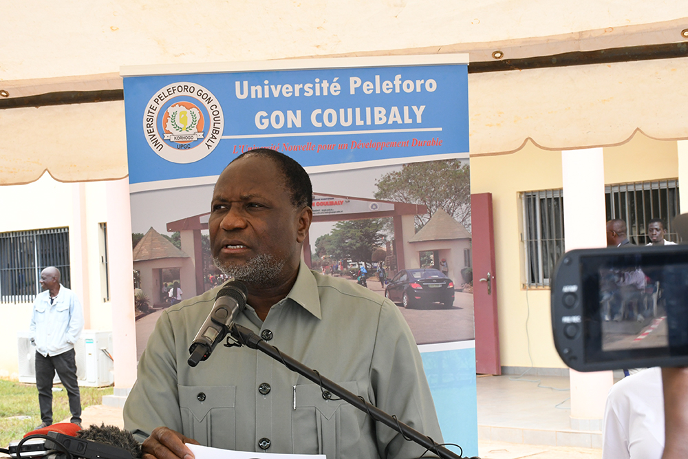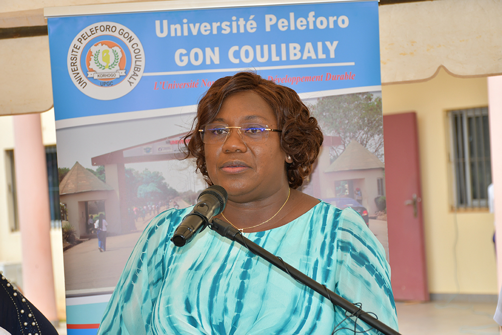 La cérémonie d’inauguration qui s’est tenue sur l’esplanade des salles de Travaux Dirigés de l’UPGC, a mobilisé aussi bien la communauté universitaire que le corps préfectoral, les élus et cadres de la région du Poro. Honneur a été fait à Madame la 3ème adjointe au Maire de Korhogo, Dre Fara SORO pour dire le mot de bienvenue à Monsieur le Ministre et sa délégation, au nom du Député-Maire Lassina OUATTARA. Intervenant à la suite de la représentante de la municipalité, Professeure COULIBALY Aoua Sougo a rappelé les qualités du donateur et ses nombreuses actions en faveur du développement de la région. S’agissant du don fait ce jour, Madame la Présidente de l’UPGC a traduit toute sa gratitude à Monsieur le Ministre en ces termes : « Monsieur le Ministre, merci pour ce geste concret, utile et porteur d’avenir. Cette salle va énormément changer notre manière de travailler et d’enseigner, car elle vient connecter l’UPGC à la communauté scientifique mondiale ». La première responsable de l’institution s’est, par ailleurs, engagée à une gestion responsable de cette salle.