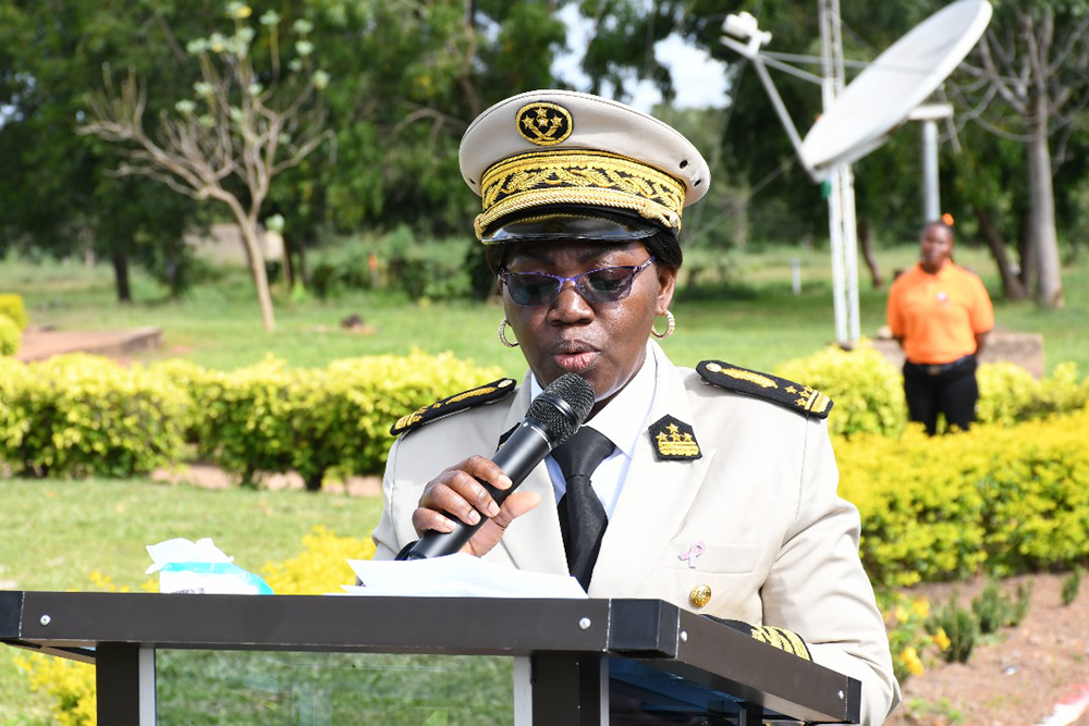 Madame le Préfet du département de Dikodougou, Hortense AMANI épouse LOBOUET, marraine de la cérémonie a traduit sa gratitude à Madame la Présidente de l’UPGC pour le choix porté sur sa personne, mais également pour avoir instauré cette tradition du salut aux couleurs au sein de l’UPGC. Madame le Préfet tout en relevant le bien fondé du salut aux couleurs dans la vie d’une Nation, indiquera qu’: « au-delà de l’esprit de l’éveil patriotique, elle nous rappelle le devoir de respecter les valeurs de la République », avant d’inviter la communauté universitaire à être des citoyens modèles. Quant au cancer du sein, second volet de cette cérémonie, la marraine a relevé qu’il constitue un problème de santé publique du fait de sa morbidité et de sa mortalité élevées. Elle a, en outre invité l’auditoire à adopter les bonnes pratiques afin d’éviter cette maladie. Mieux, Madame le Préfet a instruit la communauté à être des ambassadeurs de la lutte contre la maladie à travers la sensibilisation. « La lutte contre le cancer est l’affaire de tous. Nous devons rester mobilisés même au-delà du 31 octobre pour continuer la sensibilisation, car la lutte contre le cancer est un combat de longue haleine qui nécessite l’engagement de tous. », a-t-elle conclu.
