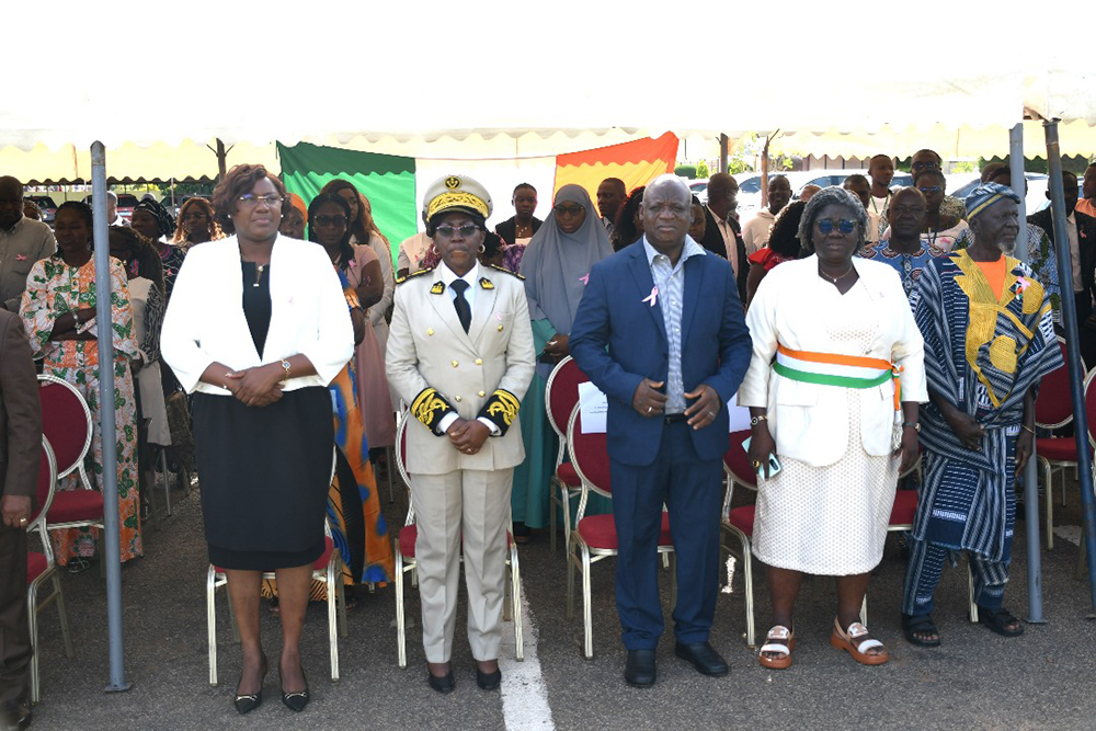 Deux séances de d’information et de sensibilisation sur le cancer du sein ont également meublé cette cérémonie. D’abord celle dite par la responsable de la cellule genre de l’UPGC, Dre DARAMCOUM Wentoin Alimata Marie Pierre, ensuite celle faite par le Directeur Régional de la Santé, de l’Hygiène Publique et de la Couverture Maladie Universelle du Poro, Dr KARAMOKO Fofana Ibrahima. Les deux intervenants ont présenté l’état des lieux du cancer du sein en Côte d’Ivoire, avant d’inviter la communauté à adopter les bonnes pratiques, mais surtout à contribuer à la sensibilisation afin d’éradiquer ce fléau.
