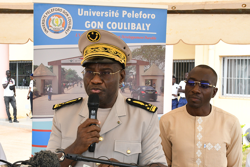 La cérémonie d’inauguration qui s’est tenue sur l’esplanade des salles de Travaux Dirigés de l’UPGC, a mobilisé aussi bien la communauté universitaire que le corps préfectoral, les élus et cadres de la région du Poro. Honneur a été fait à Madame la 3ème adjointe au Maire de Korhogo, Dre Fara SORO pour dire le mot de bienvenue à Monsieur le Ministre et sa délégation, au nom du Député-Maire Lassina OUATTARA. Intervenant à la suite de la représentante de la municipalité, Professeure COULIBALY Aoua Sougo a rappelé les qualités du donateur et ses nombreuses actions en faveur du développement de la région. S’agissant du don fait ce jour, Madame la Présidente de l’UPGC a traduit toute sa gratitude à Monsieur le Ministre en ces termes : « Monsieur le Ministre, merci pour ce geste concret, utile et porteur d’avenir. Cette salle va énormément changer notre manière de travailler et d’enseigner, car elle vient connecter l’UPGC à la communauté scientifique mondiale ». La première responsable de l’institution s’est, par ailleurs, engagée à une gestion responsable de cette salle.