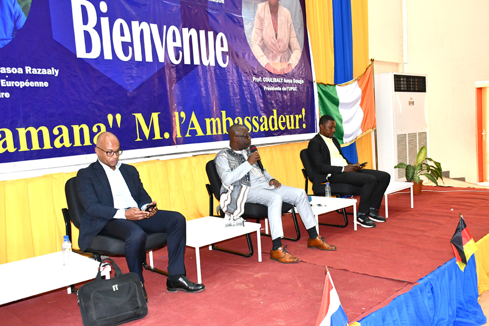 Faire connaître le programme ERASMUS+ à la communauté universitaire de l’UPGC et par ricochet encourager les candidatures aux différentes bourses, tels étaient les objectifs principaux visés par les responsables de l’institution en lien avec le point focal national de ce programme. Moment choisi par l’Ambassadeur de l’UE en Côte d’Ivoire, Son Excellence Monsieur Irchad Ramiandrasoa RAZAALY, fraichement installé, pour effectuer sa première visite au Nord du pays et rehausser l’éclat de cet évènement de sa présence.