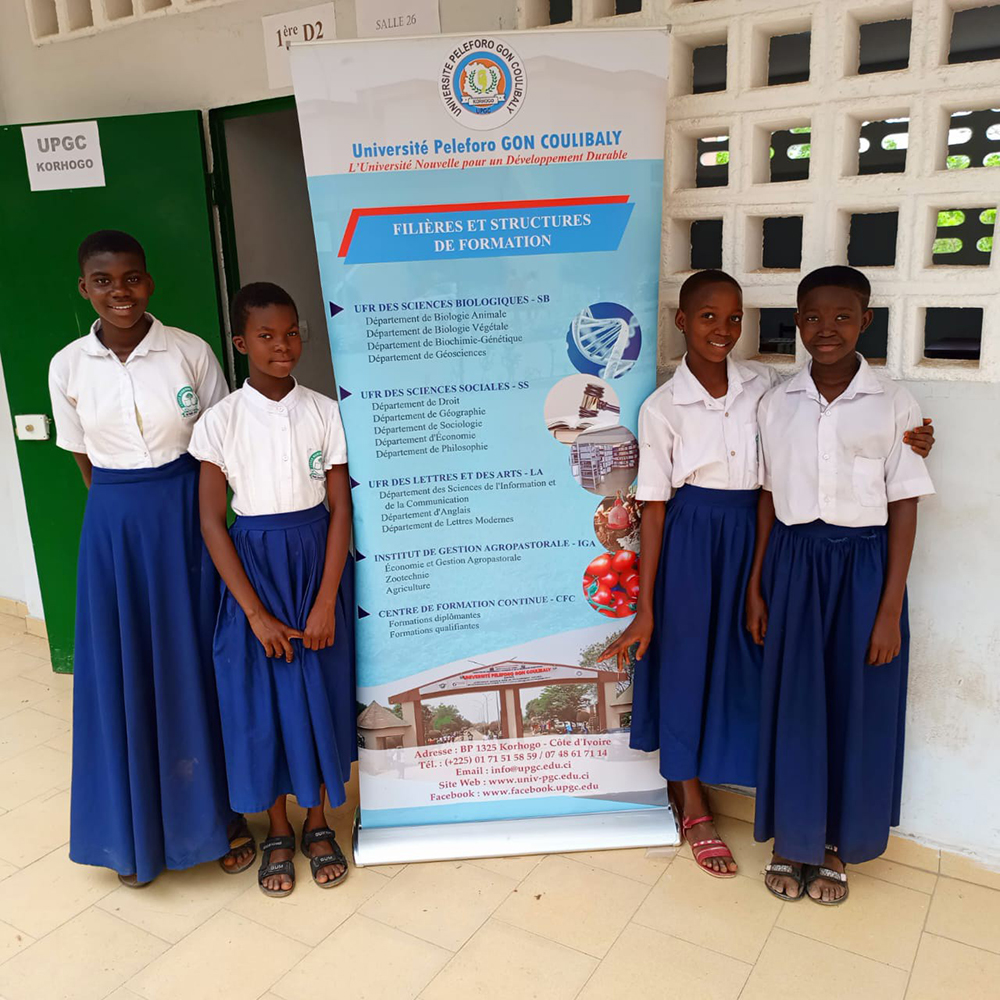 L’UPGC, dont le rôle est prépondérant dans la formation des jeunes par sa singularité, a pris toute sa place au cours de ces trois (3) jours d’activités en déployant un stand aussi bien au Lycée Moderne de Tengréla, au Lycée Municipal de Sinématiali qu’au Lycée Félix Houphouët-Boigny de Korhogo. Les filières, les débouchés, les conditions d’accès et les exigences du milieu universitaire ont été présentés par les équipes venues de cette université, sous la coordination du Chef de Service de la Vie Universitaire, Dr (MC) KOUADIO Kouakou Parfait.