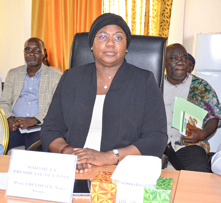 Dans son propos introductif, Professeure COULIBALY Aoua Sougo a d’abord traduit le traditionnel « FOTAMANA » aux hôtes du jour, avant d’exprimer sa joie de voir la concrétisation de ces deux Accords de Coopération. La Présidente de l’UPGC les a ensuite remercié pour la qualité des travaux préalables ayant abouti à la cérémonie de ce jour. Elle s’est enfin engagée à tout mettre en œuvre avec son équipe dirigeante pour que ces accords produisent les résultats escomptés.