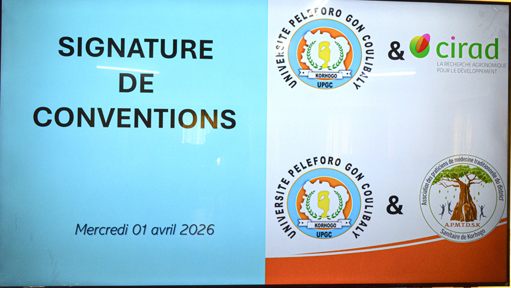 L’université Peleforo GON COULIBALY (UPGC) a signé le mercredi 1er avril 2026, deux Accords de Coopération et de Collaboration avec le Centre de Coopération Internationale en Recherche Agronomique pour le Développement (CIRAD) et l’Association des Praticiens de Médecine Traditionnelle du District Sanitaire de Korhogo (APMTDSK). La cérémonie s’est déroulée à la salle de Conseil de l’Université en présence des premiers responsables de ces différentes structures.