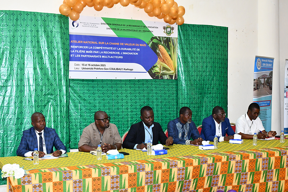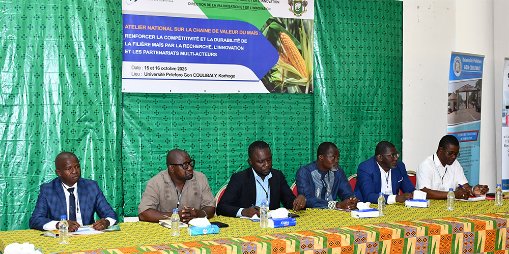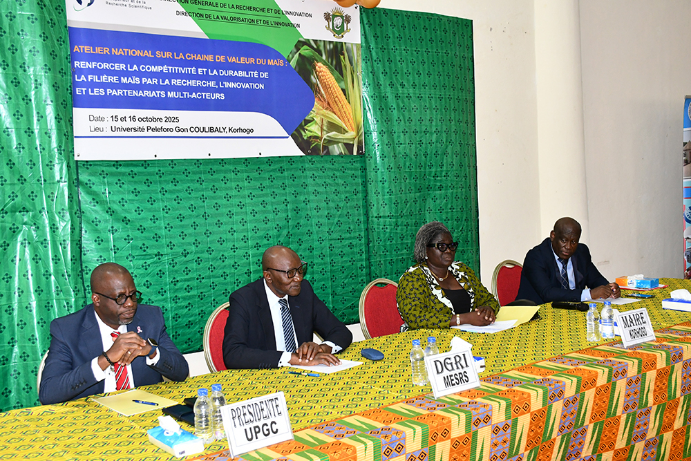 Les 15 et 16 octobre 2025, l’Université Peleforo GON COULIBALY (UPGC) a abrité un atelier national sur la chaîne de valeur du maïs, à l’initiative de la Direction Générale de la Recherche et de l’Innovation. L’ouverture et la clôture de cette activité se sont déroulées à la salle B de la Bibliothèque de cette institution, en présence des acteurs de la filière.