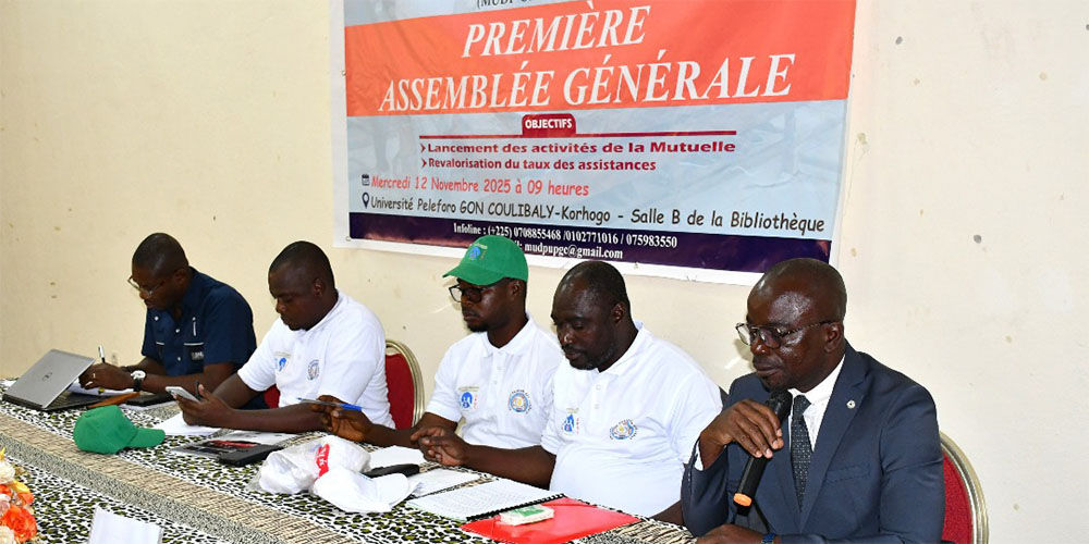 Le mercredi 12 novembre 2025, la Mutuelle du Personnel de l’Université Peleforo GON COULIBALY (MUDP-UPGC) a tenu sa première Assemblée Générale à la salle B de la bibliothèque de l’institution.