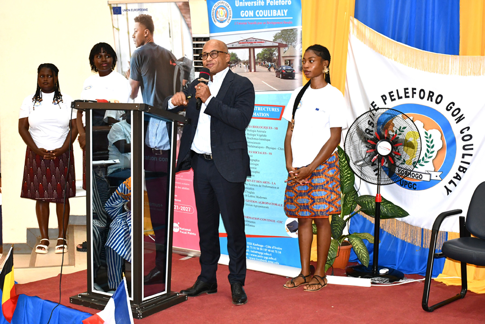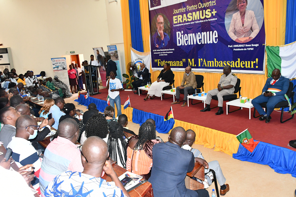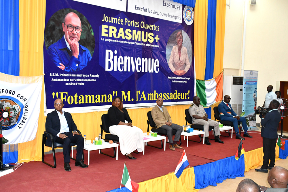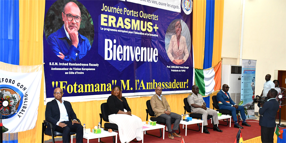Le jeudi 04 décembre 2025, l’Université Peleforo GON COULIBALY (UPGC) de Korhogo a organisé au sein de l’amphithéâtre C, une journée Portes ouvertes à l’intention de sa communauté universitaire, sur le Programme européen de bourses dénommé ERASMUS+. Tenue en présence de Monsieur l’Ambassadeur de l’Union Européenne en Côte d’Ivoire, cette activité a tenu en haleine les autorités politiques, administratives et coutumières de la ville.