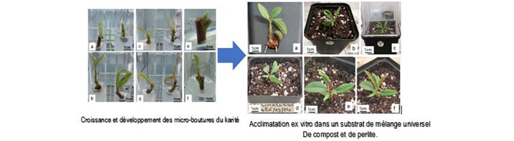 Le CRAK dispose d’expertise pour la régénération in vitro du karité sur des milieux synthétiques. Ceci permet aujourd’hui de reproduire en masse par clonage les arbres élites identifiés, les meilleurs hybrides obtenus et de poursuivre la sélection via les biotechnologies végétales.